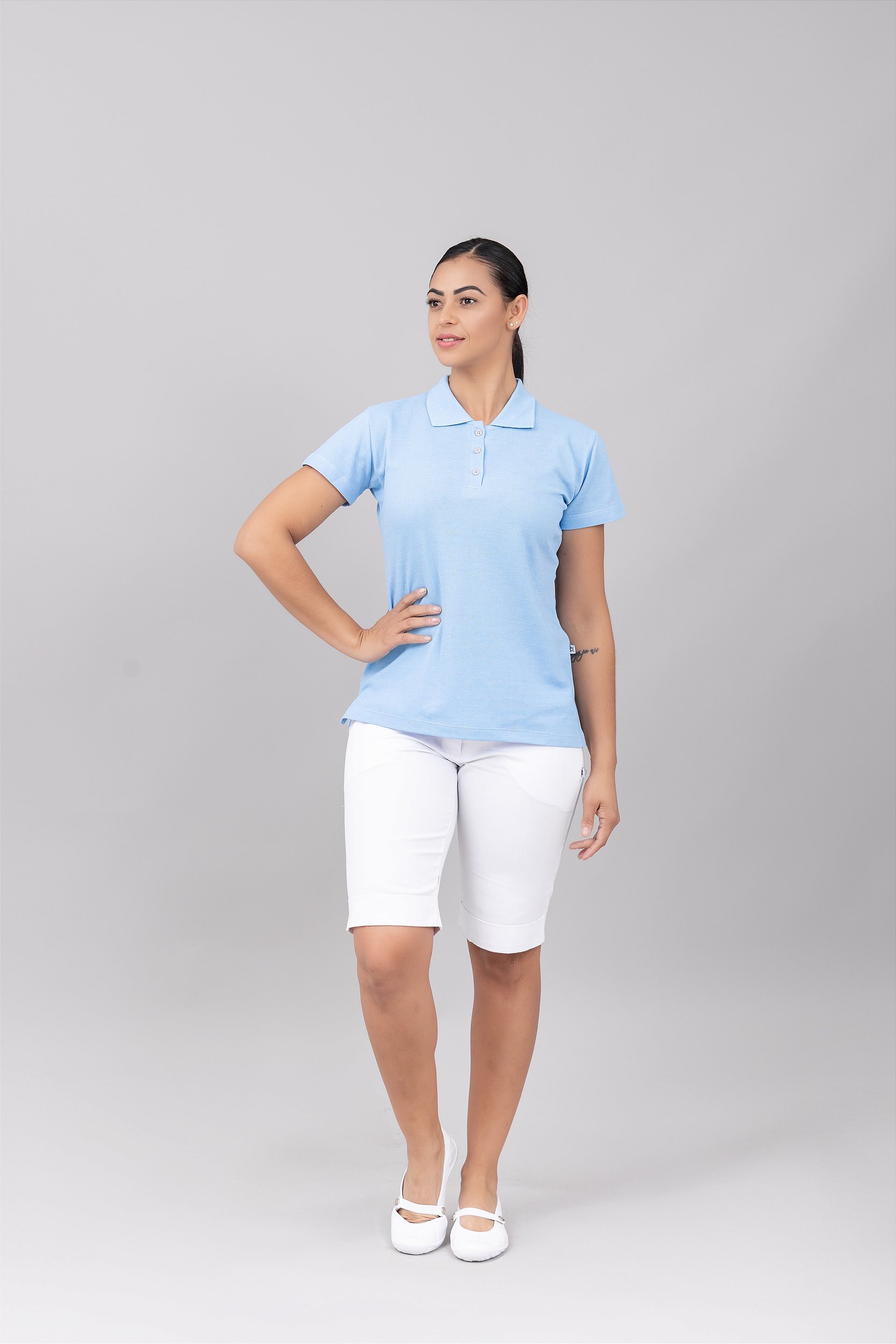 CAMISETA POLO FEMININA, MANGA CURTA SEM PUNHO - BRANCA